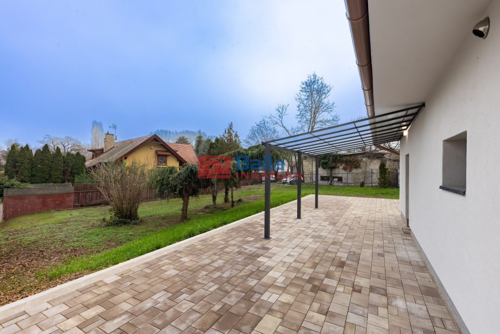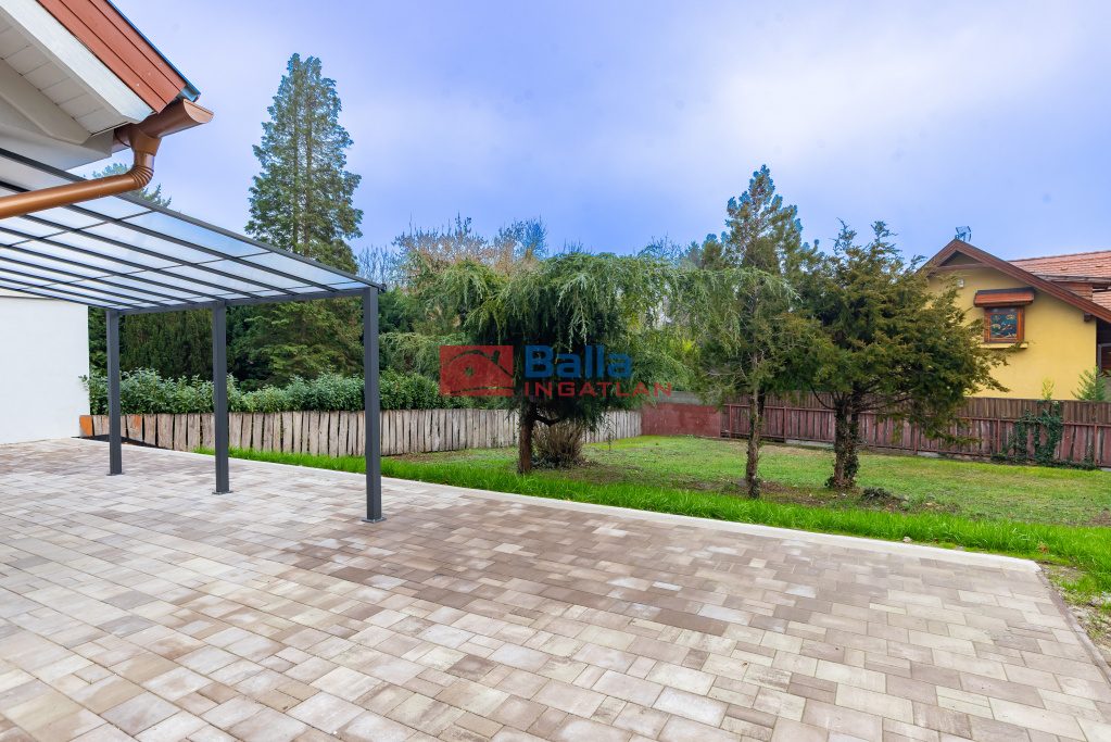 A kert rendezett, kellemes méretű, kiválóan alkalmas pihenésre vagy családi összejövetelekre. A ház mellett kialakított, térkövezett, fedett terasz tökéletes helyszíne lehet reggeli kávézásoknak vagy esti beszélgetéseknek.