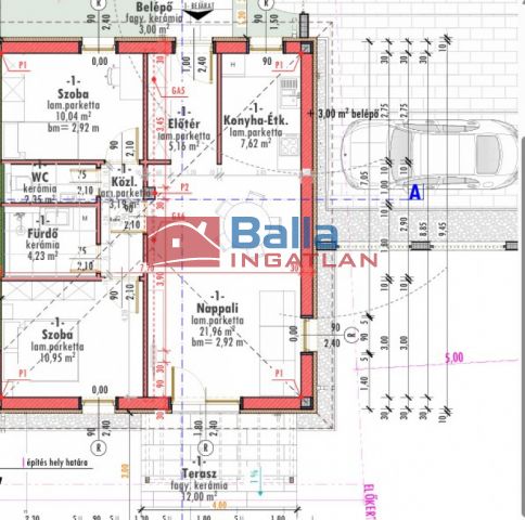 Egyéb tulajdonságok: tehermentes, külön wc, terasz (12 m²), zárt autóbeálló