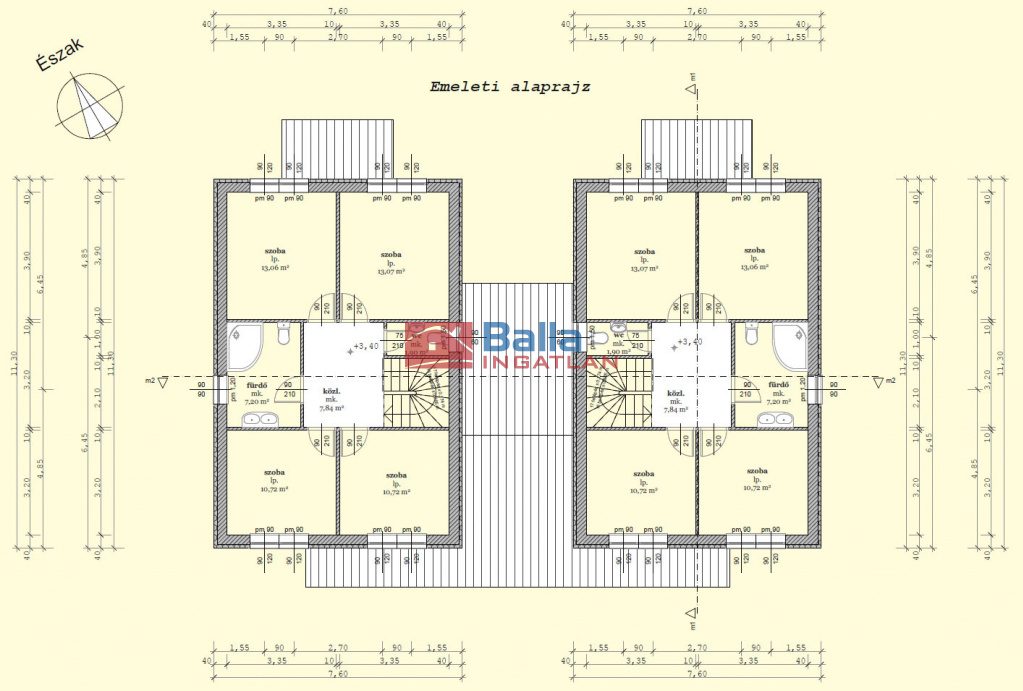 Az ingatlan egy nagyobb család számára is élhető méret, kétszintes ikerház fél, ahol a nappali-étkező-konyha mellett 5 szoba és kamra, 2 fürdőszoba is helyet kapott.