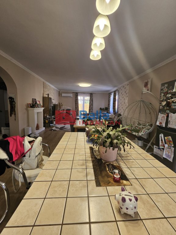 Az ingatlan egyik különleges értéke a 51,12 m²-es amerikai konyhás nappali, amely tágas, világos közösségi térként a ház központja.
