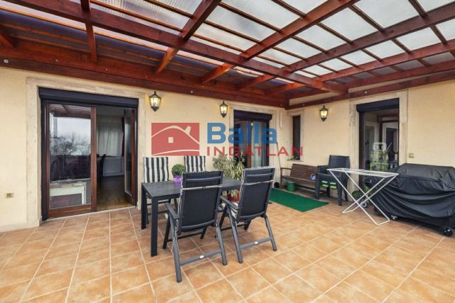 A 32 m²-es fedett, panorámás terasz minden évszakban tökéletes pihenőhely, a bejáratnál lévő 28 m²-es északi fekvésű terasz pedig nyáron kínál kellemes menedéket a forróság elől.