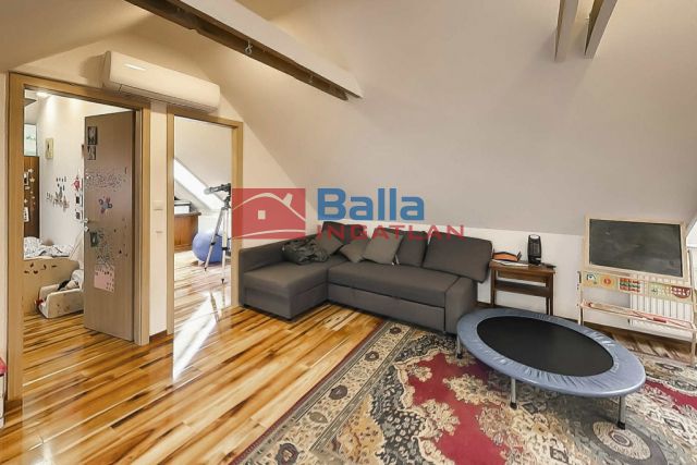 A bruttó 85 m²-es tetőtérben három további hálószoba, egy fürdőszoba és egy hangulatos közös nappali kapott helyet, amely igazi családi központtá válhat.