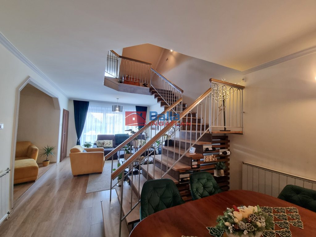 Egyéb tulajdonságok: külön étkező, külön wc, gardróbszoba, hall, terasz (20 m²), pince, garázs
