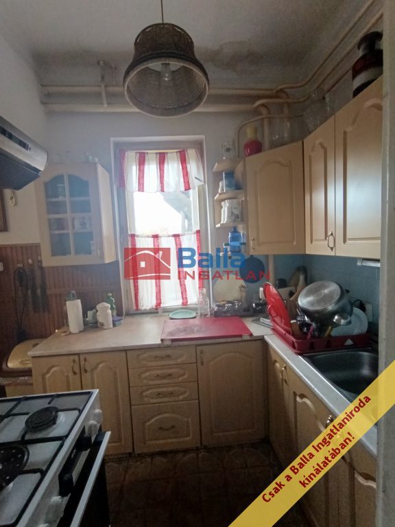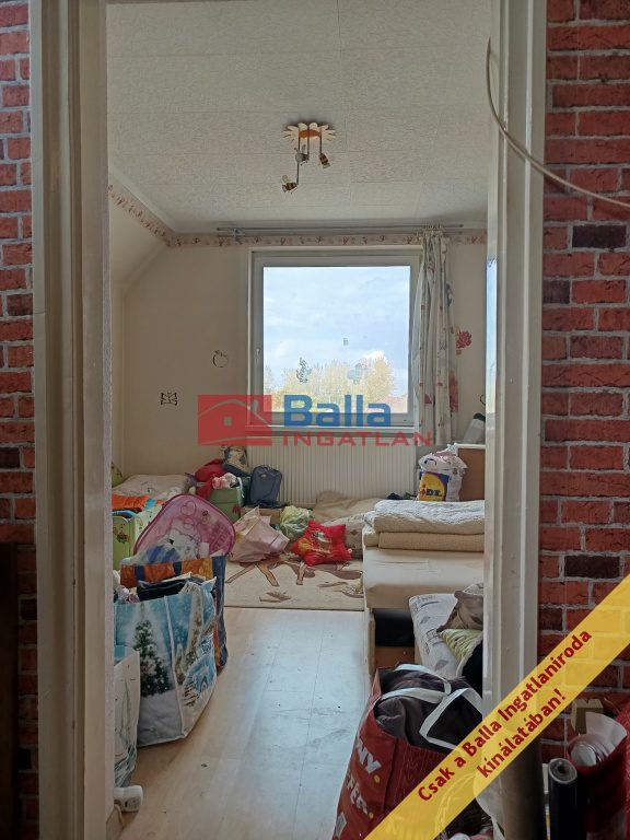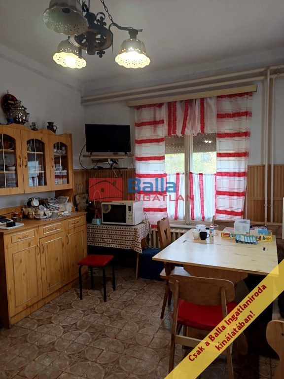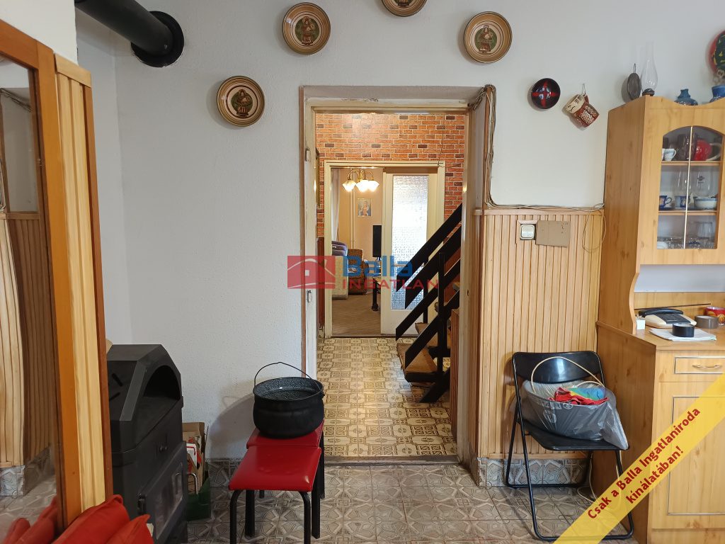 A tető hibátlan, de szigetelni érdemes. A telken és házban van villany (éjszakai-nappali áram), gáz, víz, csatorna. Radiátorai részben cserélve lettek, valamint részben az eredeti ablakok közül is lett már cserélve műanyagra. Kombi cirkó biztosítja a fűtést, illetve a tágas étkezőben van egy működőképes kazán/kandalló is. A vizet jelenleg villanybojler melegíti. Az étkező és konyha közötti részleges fal elbontható, így egy 20 m2-es konyha / étkezőt kapunk. A konyhához tartozik egy kamra, a fürdő – wc külön van. Az alsó szinten egy nagy nappali szoba van (több mint 20 m2), a fenti szinten 2 külön nyíló tágas szoba és egy jól használható galéria, tároló.