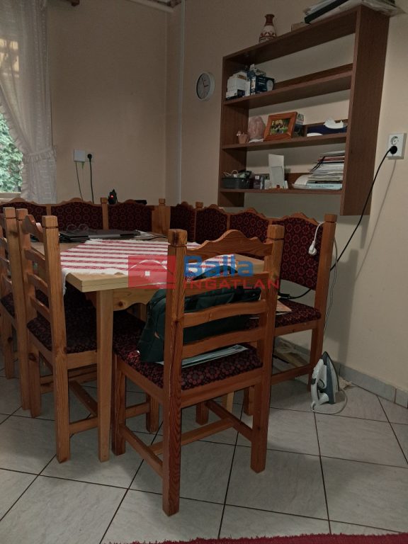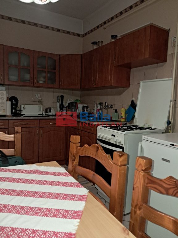 A nagyobbik rész: előszoba, 3 szoba, nagy étkezős konyha, kamra, fürdőszoba WC-vel, helyiségekből áll. / A fürdőszobára igény szerint rá fér a modernizálás, de jelen állapotában is használható.