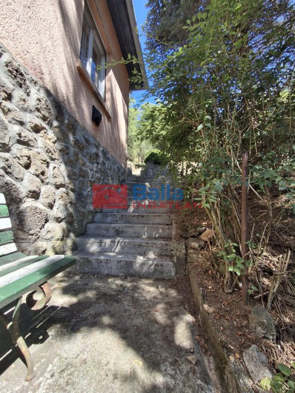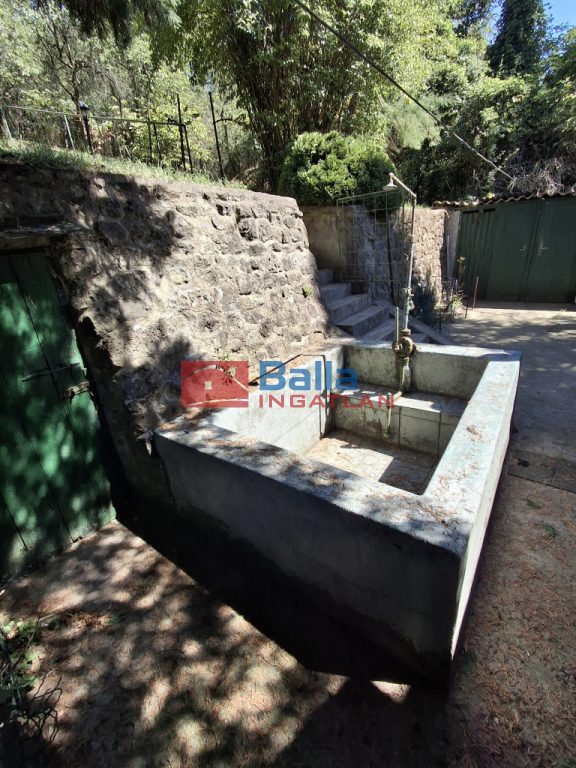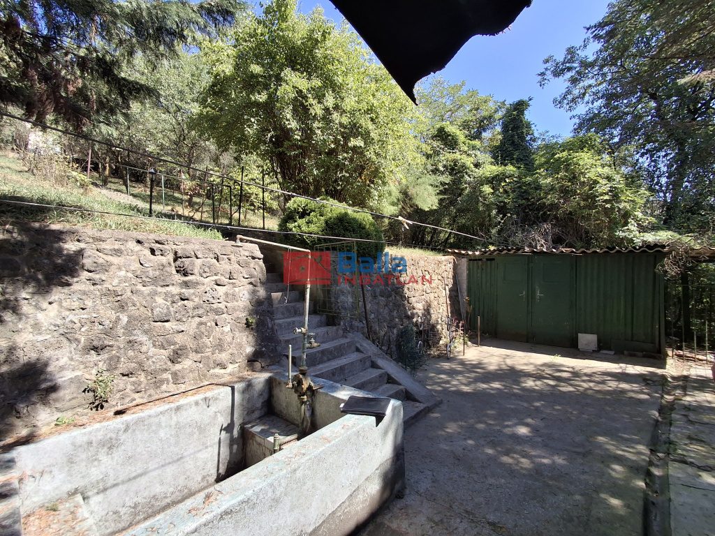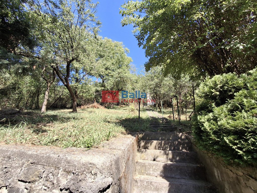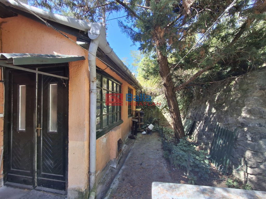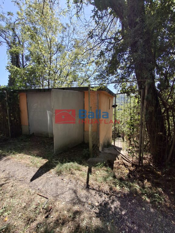 A felső utcáról közvetlenül egy garázs nyílik. Onnan a házhoz a kerten keresztül vezető lépcsőn juthatunk. Melléképületek, kis kerti medence, hegybe vájt pince, gyümölcsfák, gyönyörű kilátás!