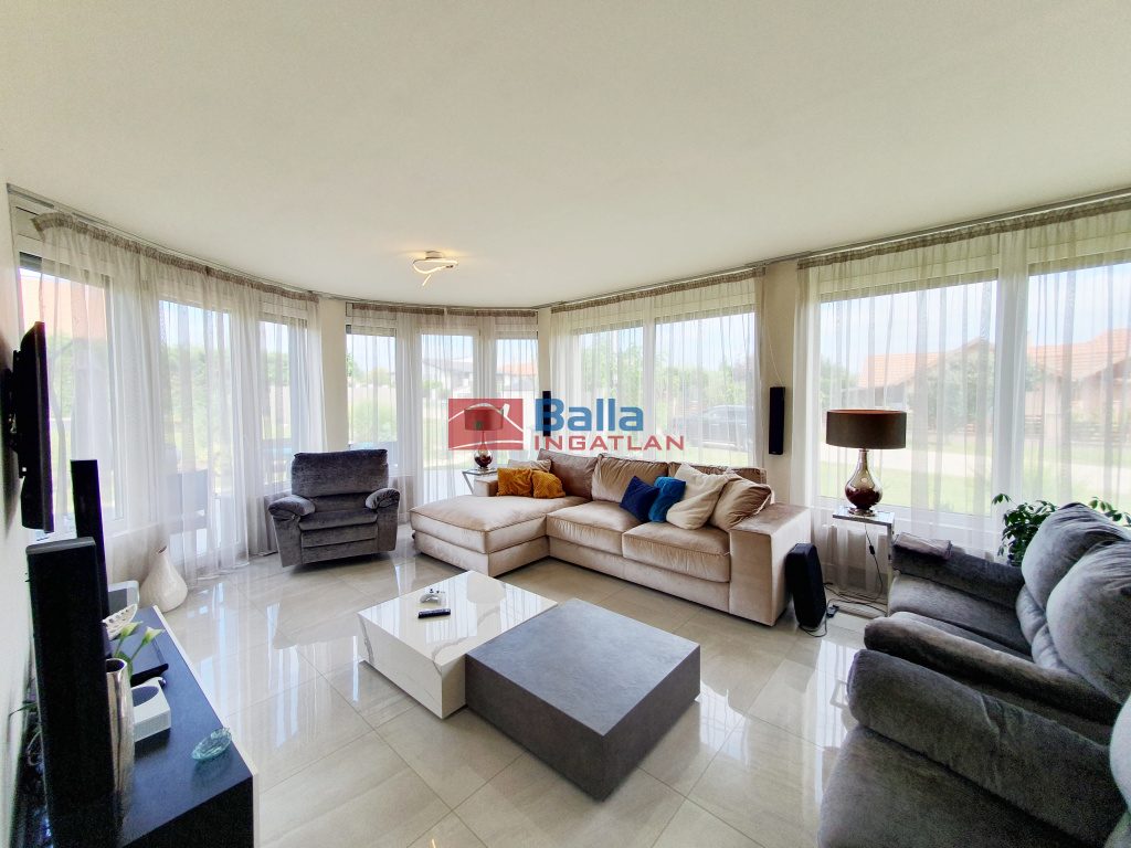 Extrák: Kiváló minőségű luxuskivitel. Elektromos távműködtetésű redőnyök. Szúnyogháló. Egyedi méretre gyártott nyílászárók. Központi porszívó, részben padlófűtés, központi szennyes ledobó. Dupla fűtött garázs.