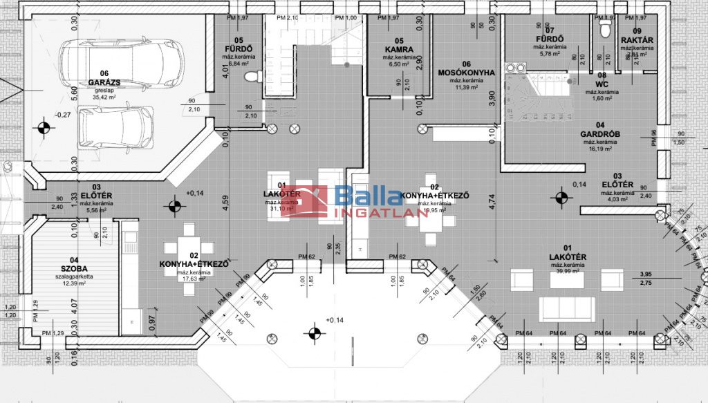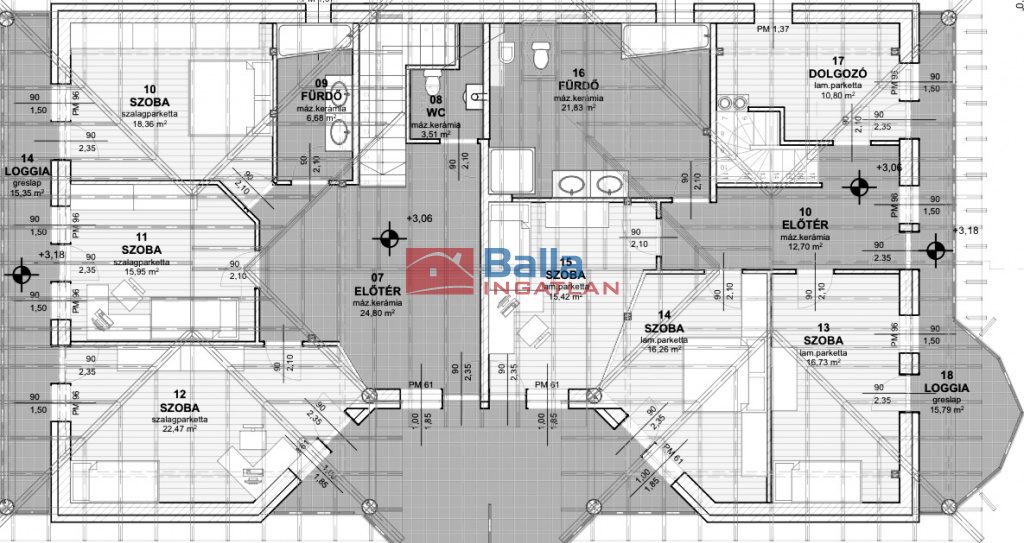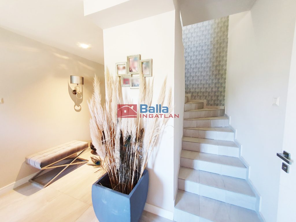 Egyéb tulajdonságok: tehermentes, külön wc, gardróbszoba, kamra, hall, loggia (88 m²), terasz (25 m²), garázs, zárt autóbeálló, utcai parkolás