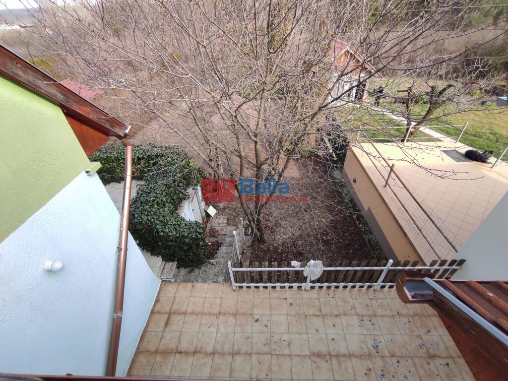 Az alsó szinten a megnyerő méretű egylégterű amerikai konyha-nappali mellett egy dolgozószoba, ill. fürdőszoba (zuhanyzós) és külön wc van, míg a felső szinten, a nyitott galériáról 3 szoba, fürdőszoba nyílik. Itt is, és a földszinten is kellemes terasz tartozik a házhoz. A földszinti teraszokról a kertbe juthatunk, ahol gyümölcsfák vannak.