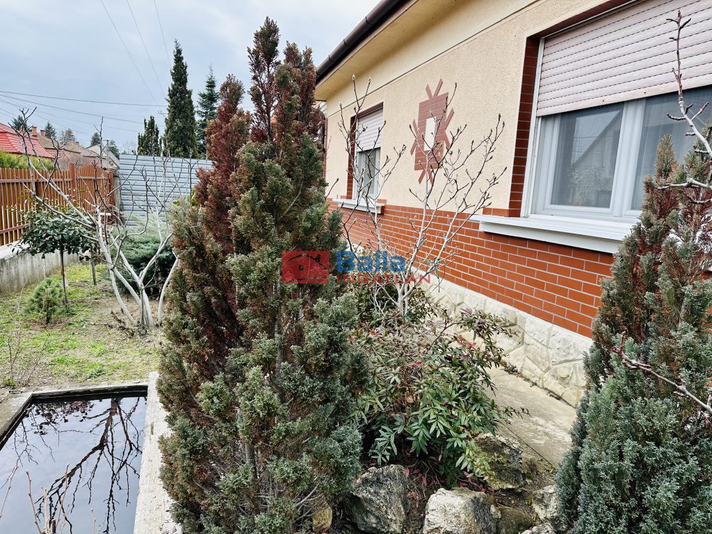 - A kert gondozott, füvesített és gyönyörű díszfákkal beültetett, továbbá az előkert helyet biztosít egy hangulatos kis tavacskának. A kertben fúrt kút is megtalálható, amellyel a kert öntözése, medence felöltése egyszerűen megoldható.