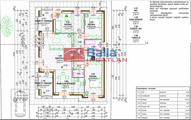 Egyéb tulajdonságok: tehermentes, akadálymentes, külön étkező, külön wc, terasz (15 m²)