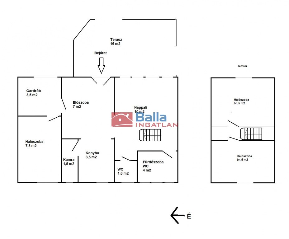Egyéb tulajdonságok: tehermentes, azonnal költözhető, kandalló, külön wc, gardróbszoba, kamra, terasz (16 m²)