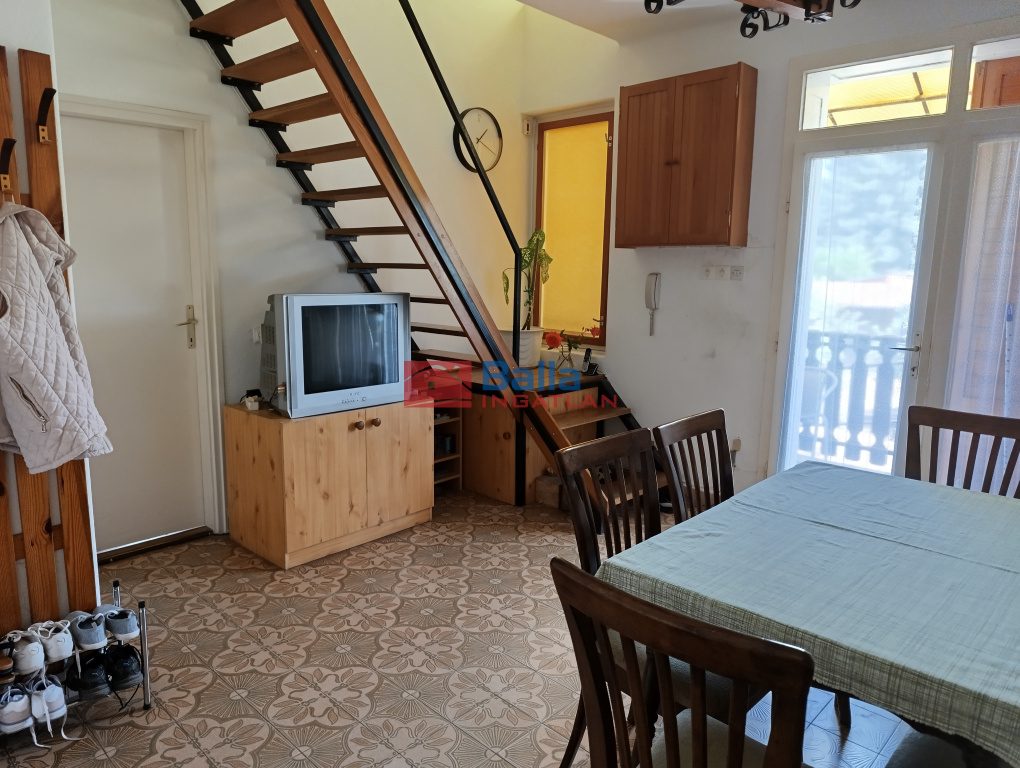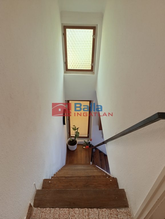 Emelet: 40 nm 1,5 szoba ,fürdőszoba /kádas/ wc-vel az egyik szoba erkély kapcsolatos , az erkélyről nyílik egy zárt tároló is .Az emelet is teljes belmagasságú.