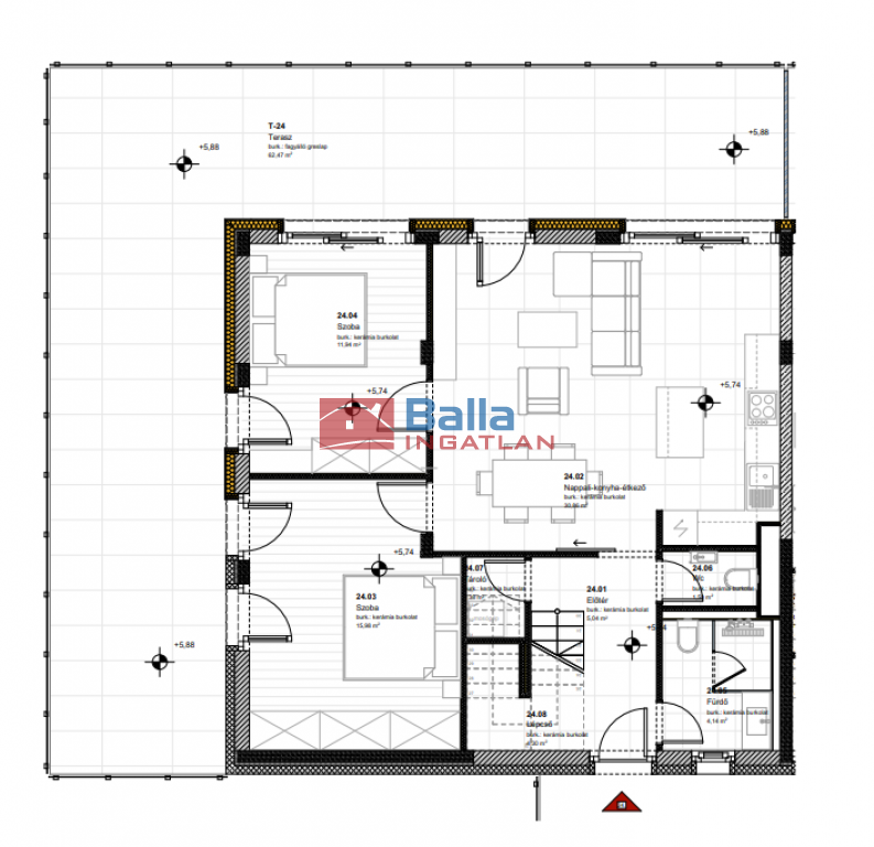 Egyéb tulajdonságok: tehermentes, fan-coil, külön wc, erkély (18 m²), terasz (50 m²)