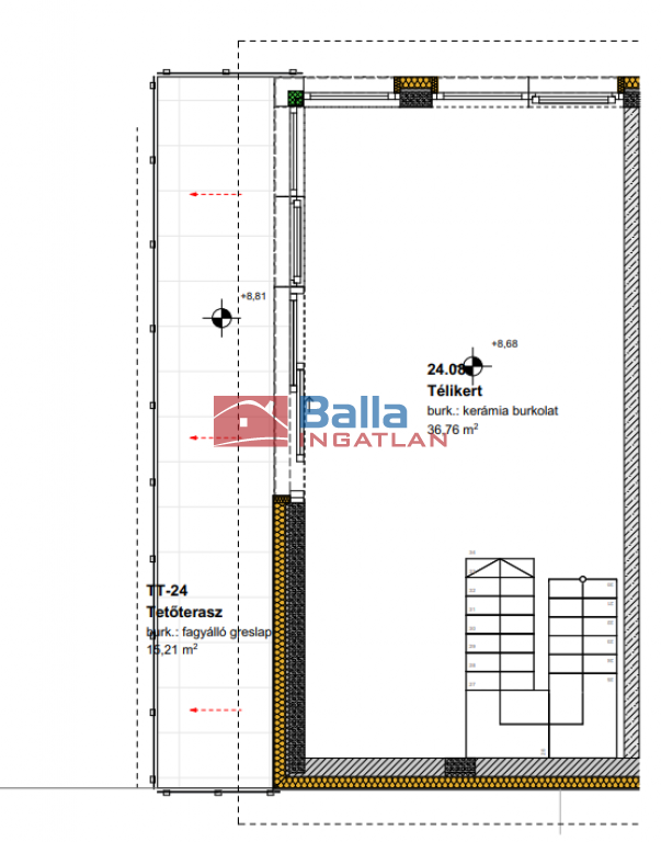 Egyéb tulajdonságok: tehermentes, lift (1 db), fan-coil, külön wc, erkély (18 m²), terasz (50 m²)