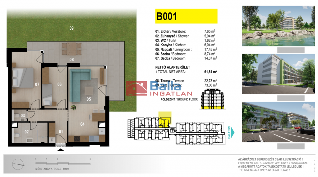 A Balla Ingatlan siófoki irodája öt emeletes apartmanházban(100 lakás) kínál panorámás, vízparti lakásokat megvételre. Praktikum, használhatóság, fenntarthatóság jellemzi a lifttel rendelkező ingatlant. Jó elhelyezkedés, igényes tervezés, értékállóság 6 szinten. 46-81 m2 közötti alapterületekkel, élhető erkélyekkel,földszinti kertkapcsolattal, beléptető rendszerrel , tetőterén exkluzív panorámás tetőteraszokkal kínáljuk őket.