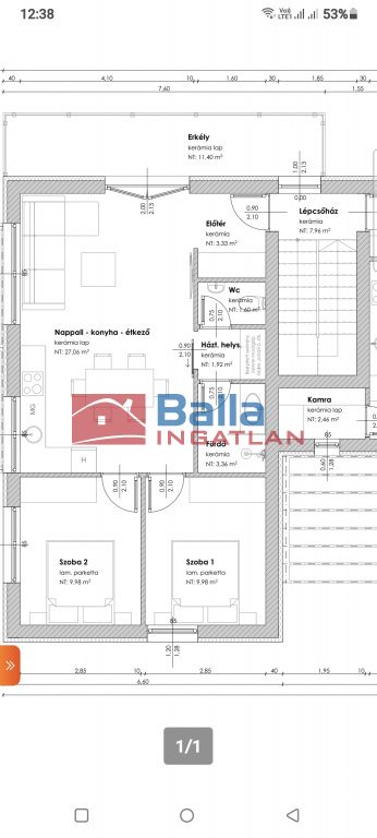 NETTÓ: 58 m2 /ERKÉLY: 11.4 m2 / KERT: 53 m2