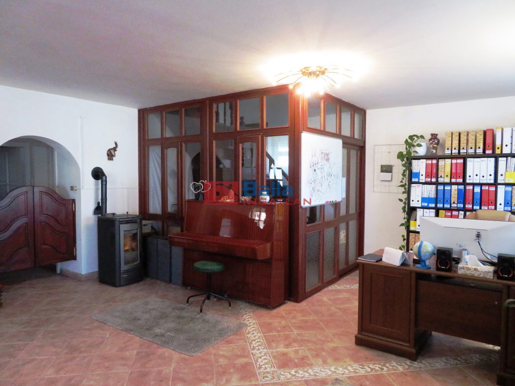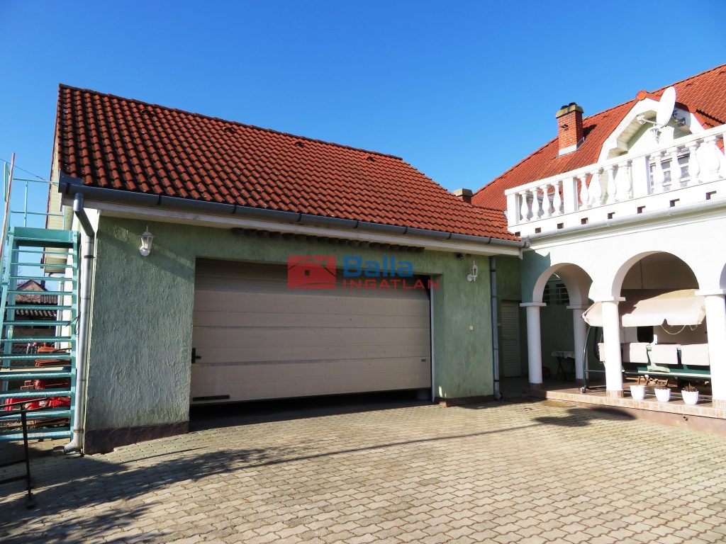 Az épület folytatásában kazánház, szoba, 36 m2 alapterületű ,két autóbeállására alkalmas garázs.