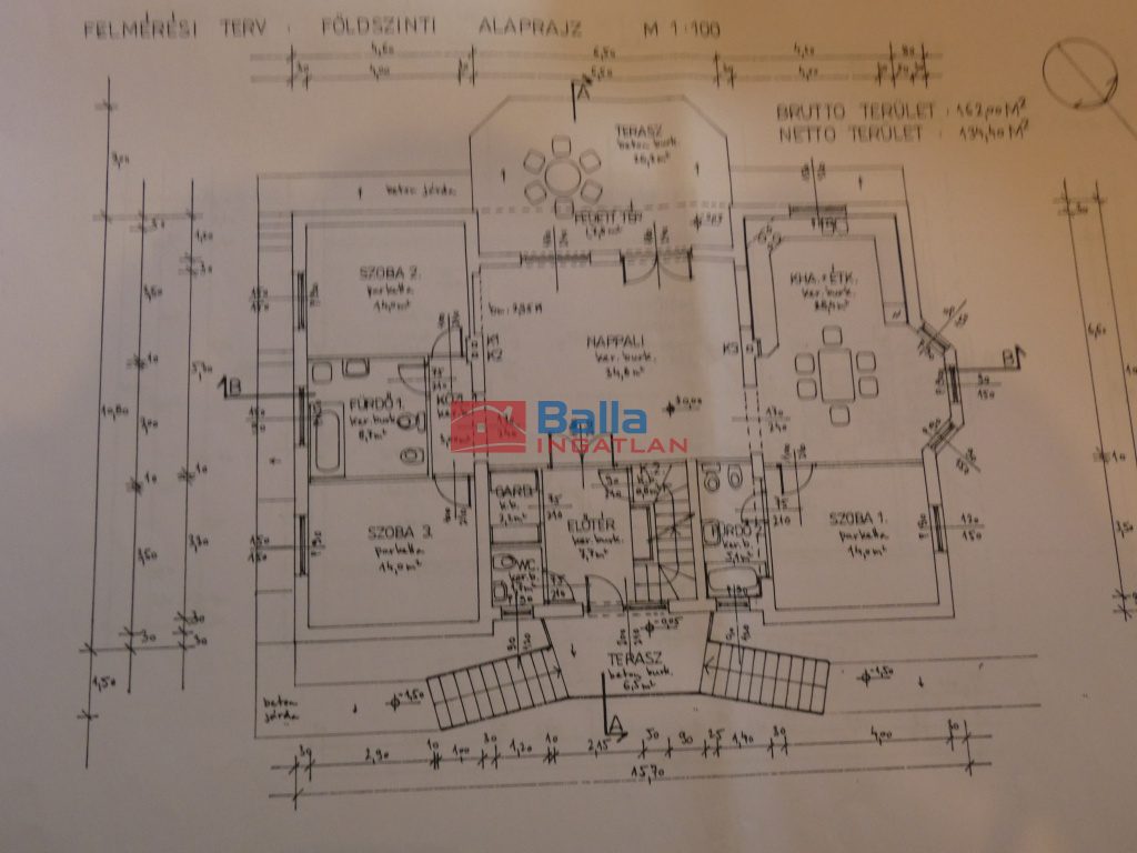 Egyéb tulajdonságok: tehermentes, külön wc, gardróbszoba, kamra, erkély (8 m²), terasz (15 m²), szuterén (131 m²), garázs