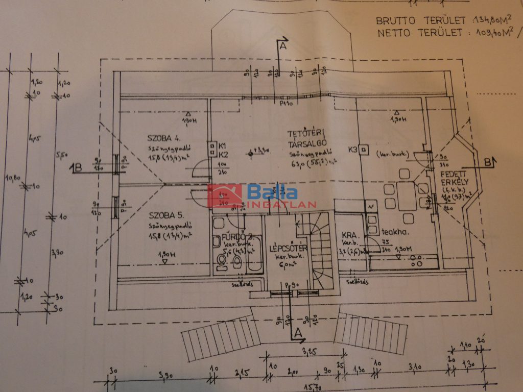 • Tágas (34m2) nappali, három hálószoba, fürdőszoba WC-vel, külön WC, gardrób, hatalmas (28m2) étkezős konyha