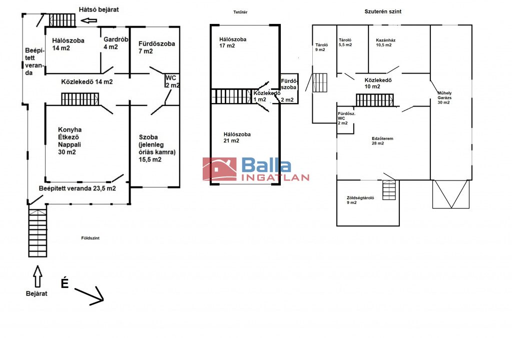 A háromszintes családi ház nappalival és négy hálószobával bőven elegendő teret kínál akár egy nagycsalád számára is. A magasföldszinten az amerikai konyhás nappali a közös pillanatok színtere, ahol a főzés, a beszélgetés és a nevetés egy térben történik. A két hálószoba közül az egyik gardróbszobával, a másik jelenleg éléskamraként funkcionál, de könnyedén visszaalakítható. A fürdőszoba és a külön WC praktikus elrendezést biztosít.