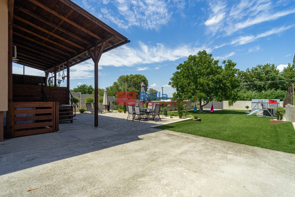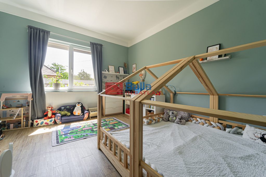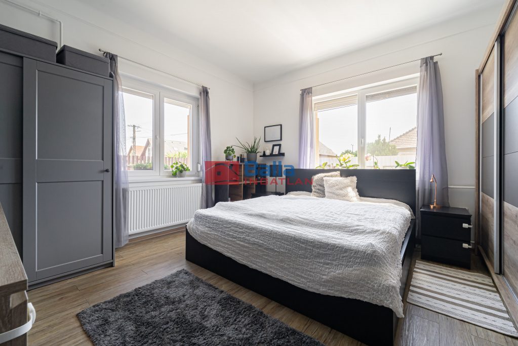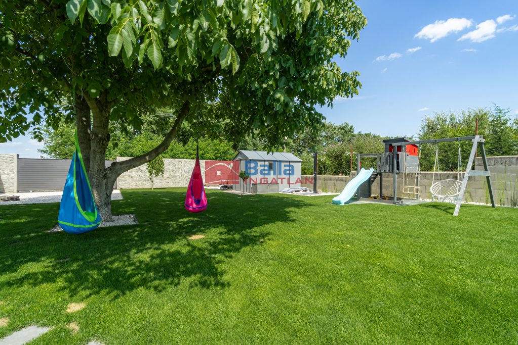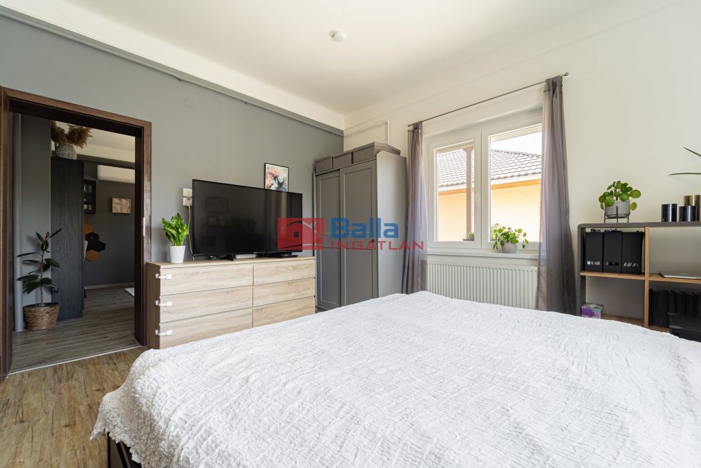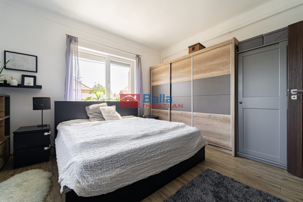 Extrák: Teljesen felújított ház, hőszigetelt nyílászárók redőnnyel és szúnyoghálóval, biztonsági bejárati ajtó, minőségi burkolatok, fűtés gázkazánnal és vegyes tüzeléssel, hűtő-fűtő klíma, beépíthető tetőtér további szobákhoz, szinte teljesen bútorozott és gépesített, 773 m² parkosított kert, automata öntözőrendszer fúrt kútról, robotfűnyíró, játszótér, kutyakennel és virtuális kerítés,16 m² fedett terasz, 32 m² száraz szigetelt pince, térkövezett autóbeálló több autónak, két utcára nyíló telek.