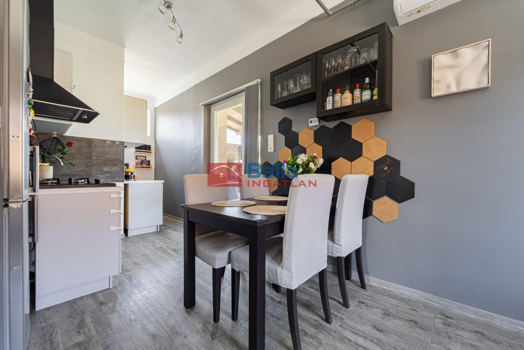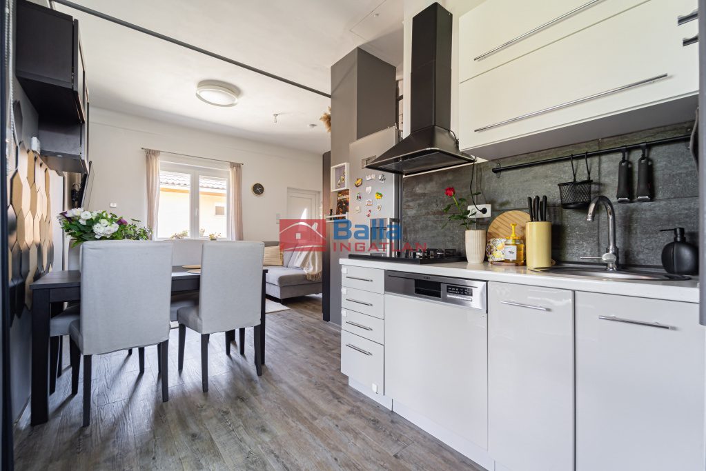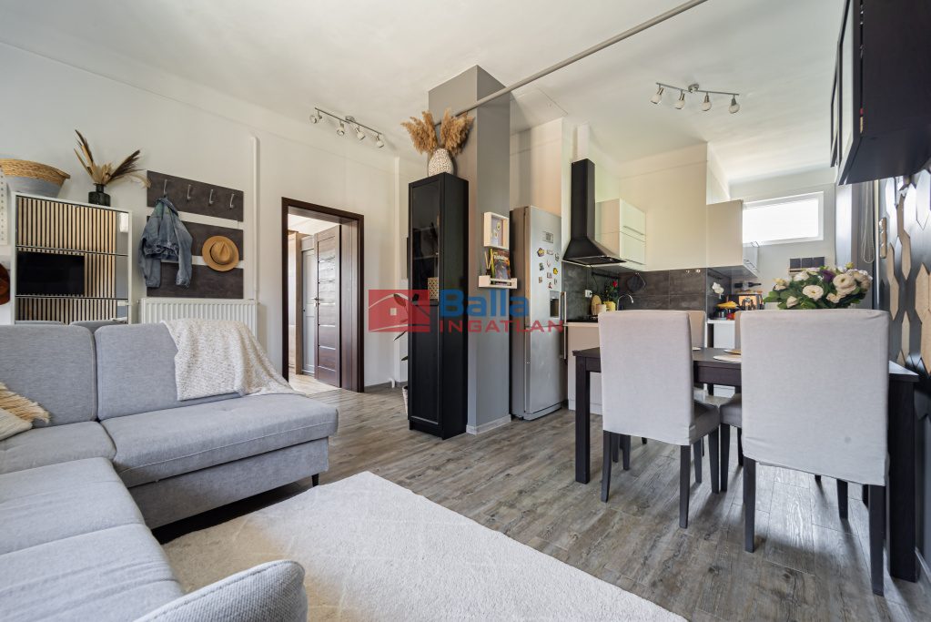 Az ingatlan két külön nyíló szobából és tágas nappali–konyha–étkező térből áll, ahol a természetes fény és a modern kialakítás igazán hívogatóvá teszi a tereket. A hőszigetelt, redőnnyel és szúnyoghálóval felszerelt nyílászárók, valamint a biztonsági bejárati ajtó a komfort és biztonság érdekében kerültek beépítésre.