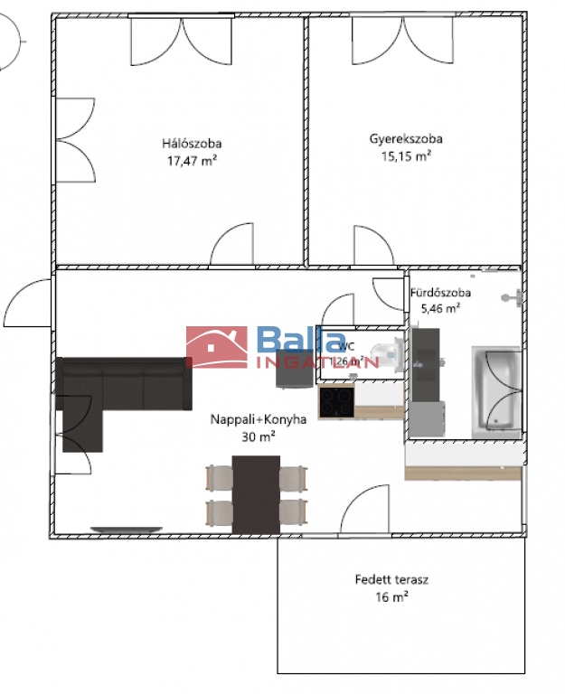 Egyéb tulajdonságok: külön wc, terasz (16 m²), pince, zárt autóbeálló