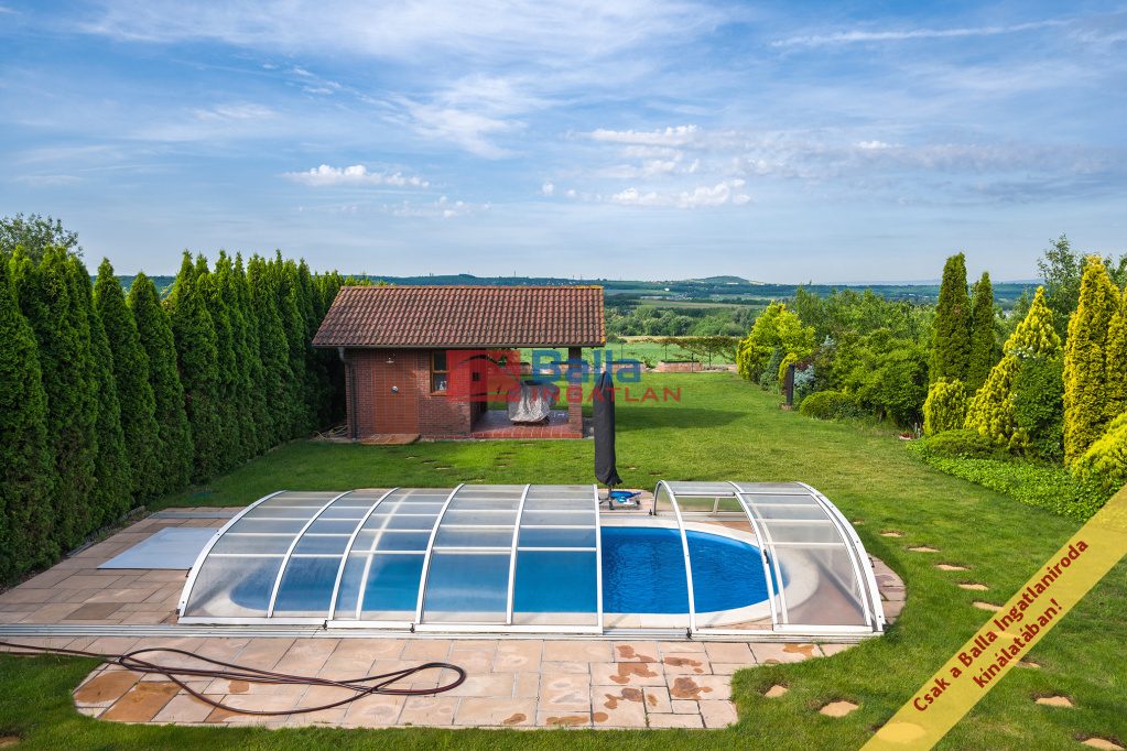 Eladó panorámás családi ház Szadán, rendezett kerttel, medencével és nyári konyhával!