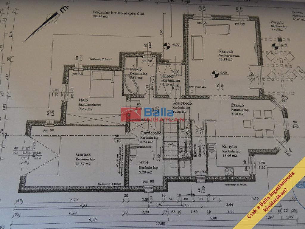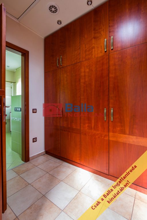 Egyéb tulajdonságok: tehermentes, gardróbszoba, kamra, terasz (20 m²), garázs, zárt autóbeálló