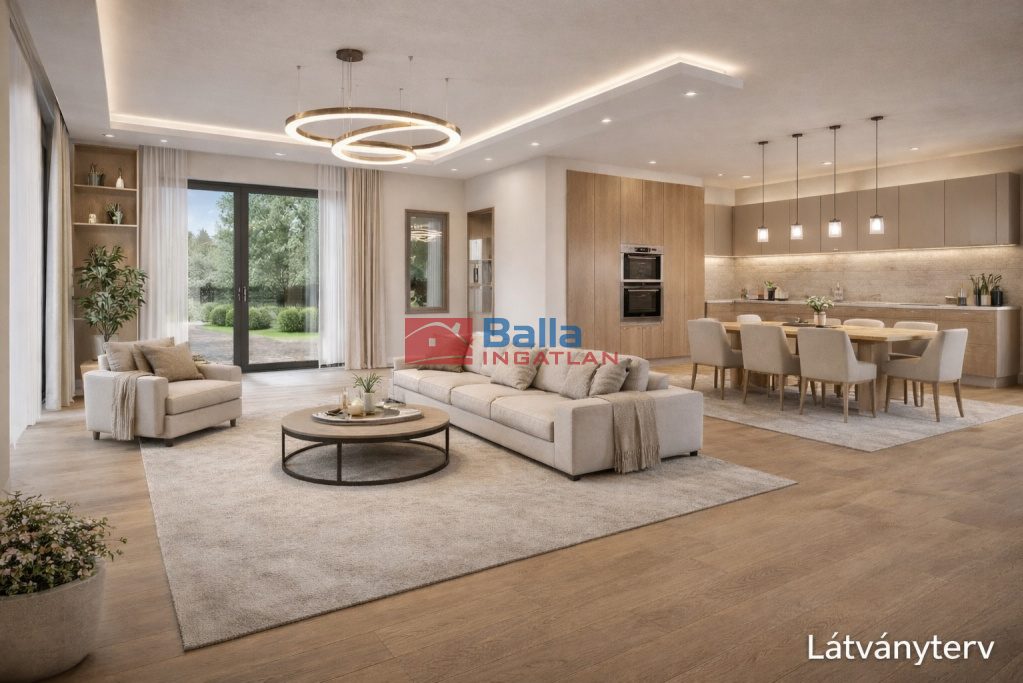 Szada egyik legigényesebb, új presztízsű lakóparkjában kínálunk megvételre egy modern, földszintes prémium családi otthont, amely 1500 m²-es, kivételesen nagy zöldfelületű telken helyezkedik el.