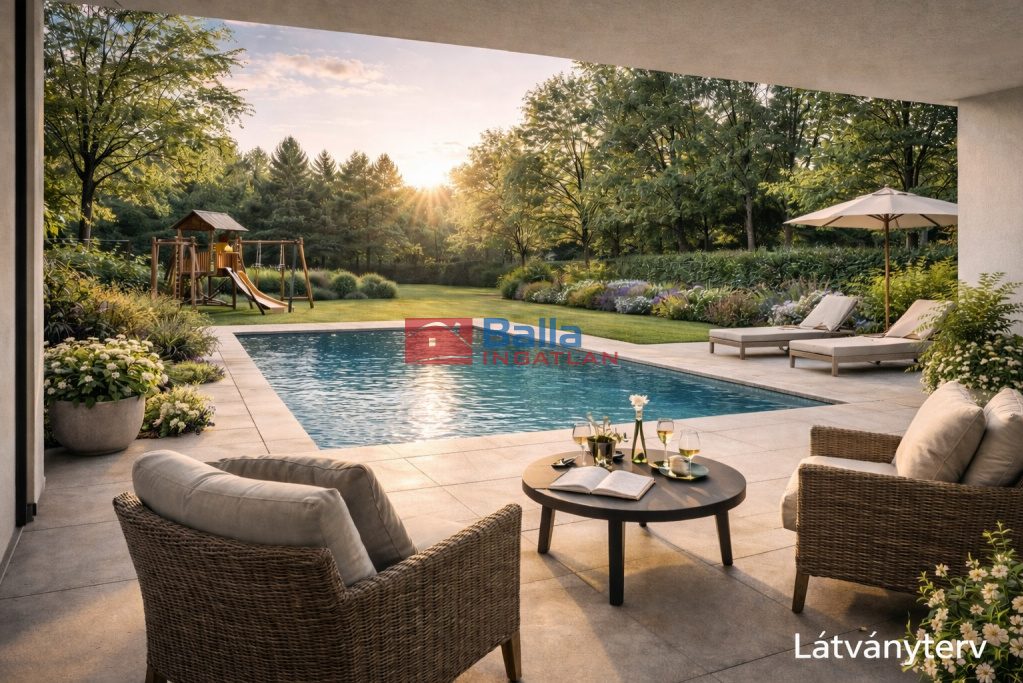 Bővíthetőség: Extra költségért (az ár felett) lehetőség van egy 8×4 m-es medence kiépítésére, amely közvetlenül a teraszba integrálódik.