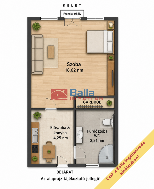* Keleti tájolás, napfényes lakótér