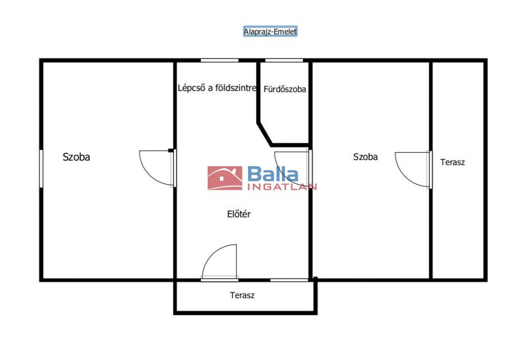 Emeleten: 2 hálószoba + egy középső tér, amely könnyen újabb szobává alakítható (erkélykapcsolattal), valamint egy második fürdőszoba