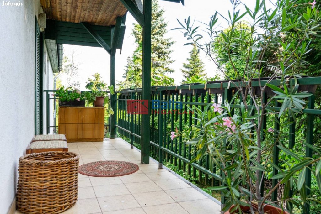 Szentendrén a Kada csúcs szomszédságában, 90-es években épült, jó állapotú, örök panorámás és dús növényzettel, gyümölcsfákkal, halastóval és fedett autóbeállóval rendelkező telken családi ház eladó.