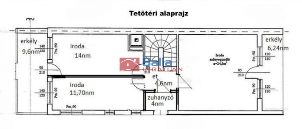 • Felső szint: további irodák/szobák és fürdőszoba.