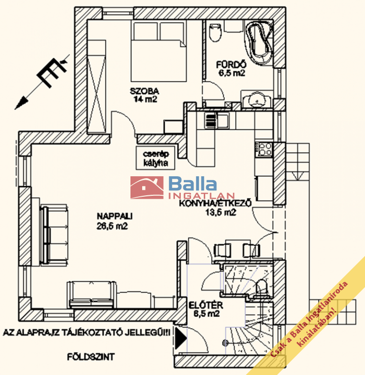 Elrendezés: amerikai konyhás nappali, 3 hálószoba, 2 fürdő + vendég WC