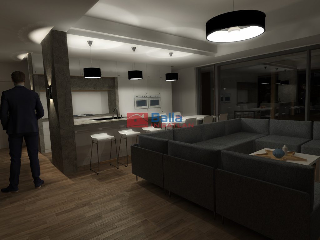 A garázsszinten felül további két szinten helyezkedik el az élettér, melynek szinte minden helyisége terasz vagy kert kapcsolatos. A nappali/étkező hatalmas üvegfelületekkel, kertkapcsolattal és fedett terasszal egyaránt rendelkezik. Lakásonként egy kétállásos garázs elektromos autótöltővel, wellness/fitnesz helyiség, dolgozó/vendégszoba, amerikai konyhás nappali, 4 hálószoba és 3 fürdőszoba kerül kialakításra.