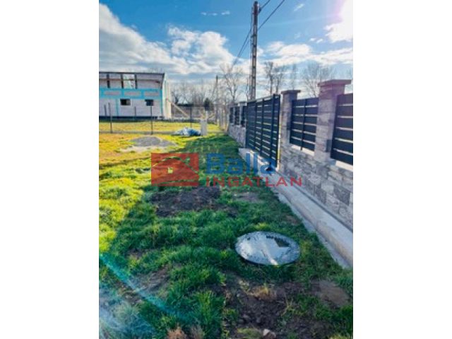 A telek 18 m széles és 35 m hosszú.A telek mérete 683 nm.Víz ,villany ,áram ,csatorna a telken belül.Teljesen körbe kerített.Az utcafronton Leiler kő alapon álló kerítés.4 méteres motorizált kapu.Közvetlen vízkapcsolat ,páratlan kilátás.Beépíthetőség 15%.