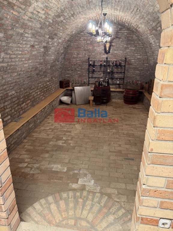 dupla garázs,kamra, mosókonyha szennyes ledobóval , 2 tároló helyiség, borospince, szaunának kialakított helyiség zuhannyal.