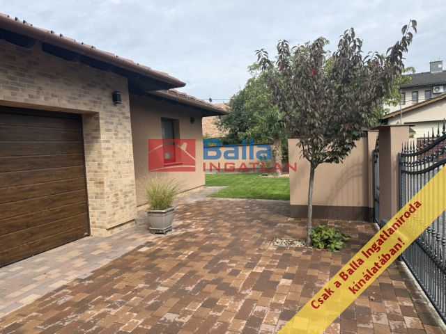 Eladó Szigetszentmiklóson, egy csendes, forgalomtól elzárt zsákutca végén, 2019-ben épült, földszintes, 166 m²-es, luxus kivitelű, 4 szobás mediterrán stílusú családi ház, 36 m²-es dupla garázzsal és 1423 m²-es parkosított telekkel!