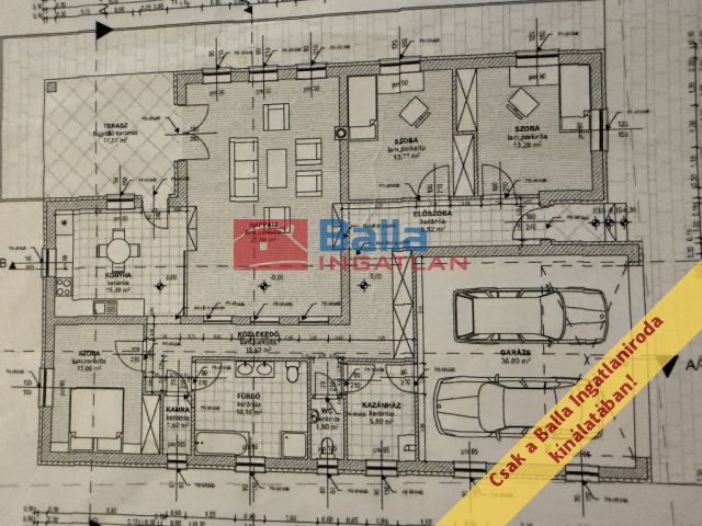Egyéb tulajdonságok: tehermentes, kandalló, külön wc, kamra, terasz (18 m²), garázs