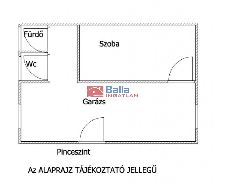 Pince: konyharész, szoba, fürdő zuhanyzóval, WC.