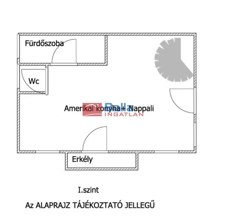 Földszint: amerikai konyhás nappali (55 m²), fürdőszoba káddal és zuhannyal, külön WC, erkély (4 m², délnyugati fekvésű).