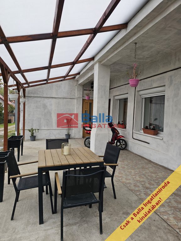 A ház szépen felújított állapotban várja új tulajdonosát, nappali + 3 hálószoba, konyha-étkező, fürdő wc-vel, kamra, pince, nagy fedett terasz, klíma. Akár idősebbek részére is kényelmes ,akadálymentesített ház két bejárattal, motoros kapunyitóval.