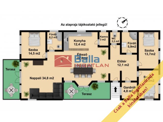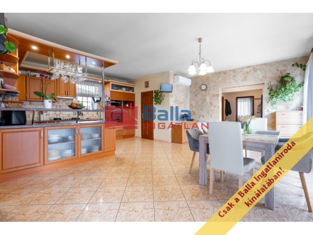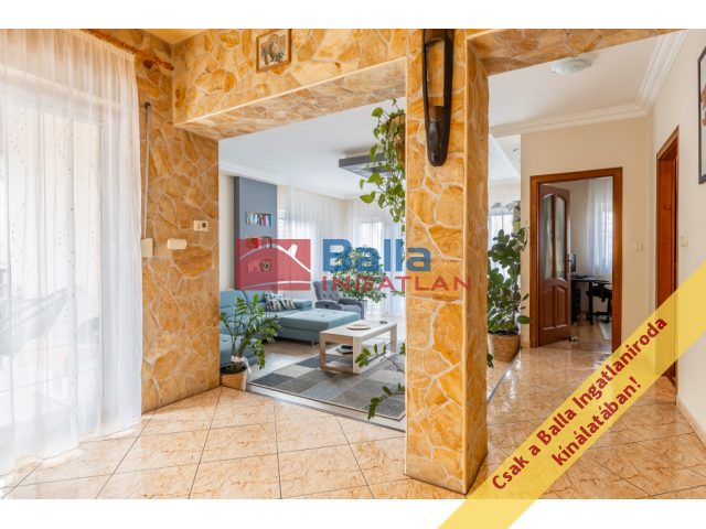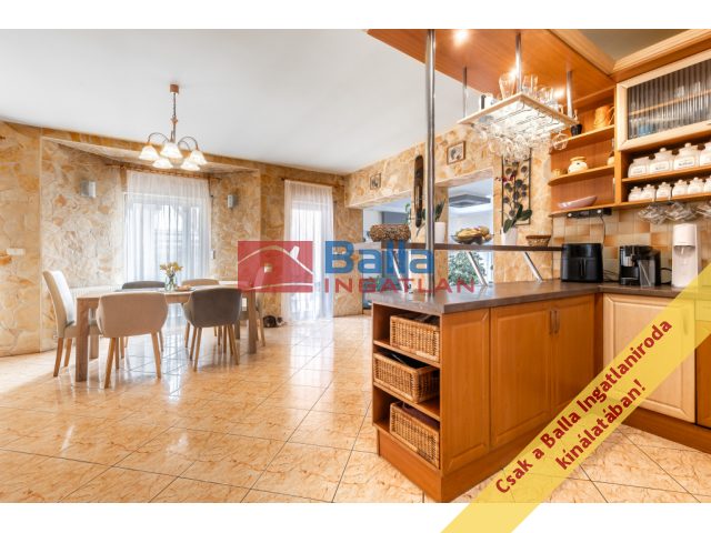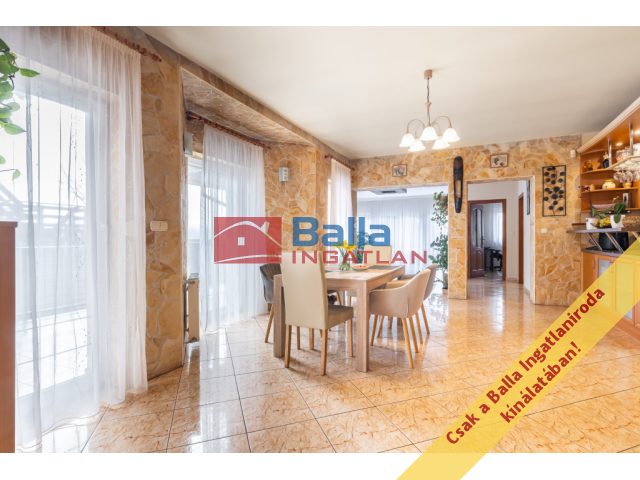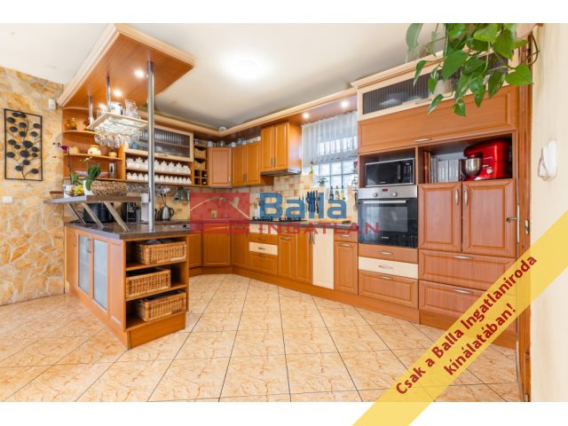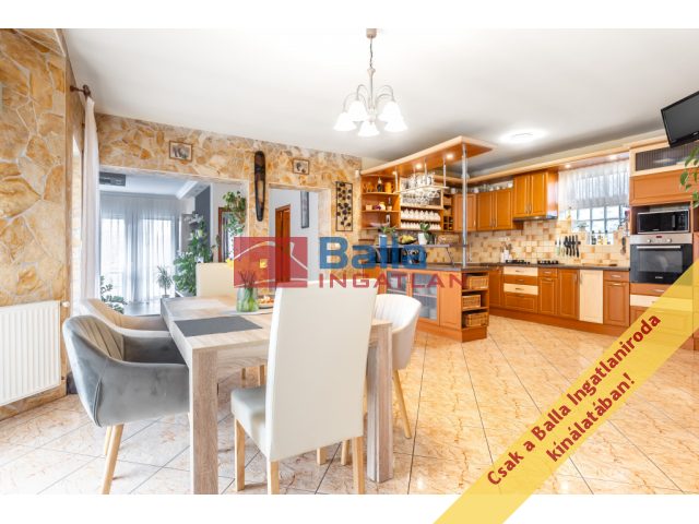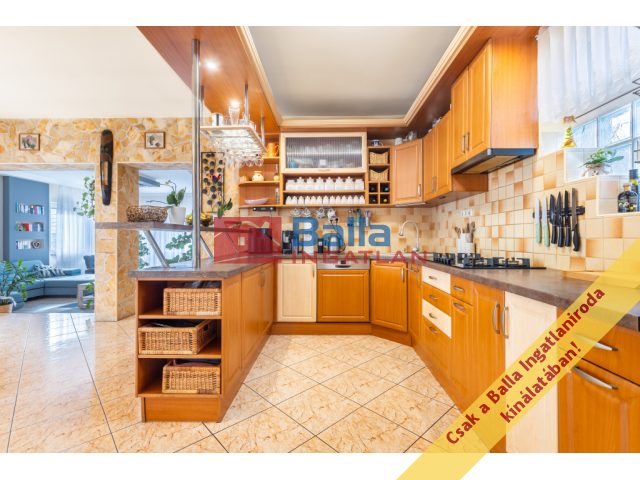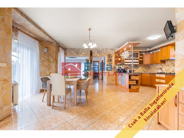 Egyéb tulajdonságok: külön étkező, külön wc, gardróbszoba, kamra, terasz (30 m²), pince, garázs