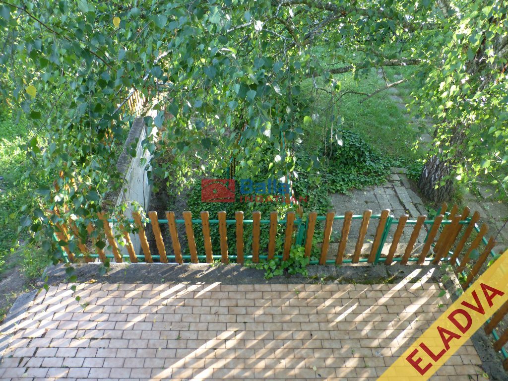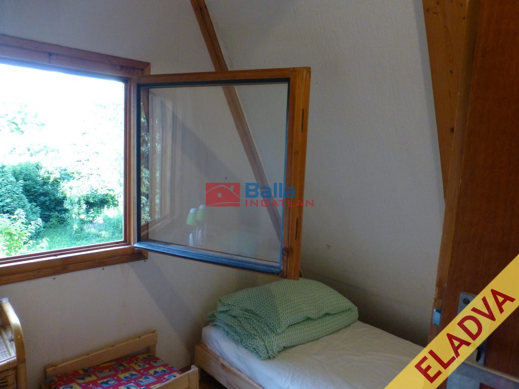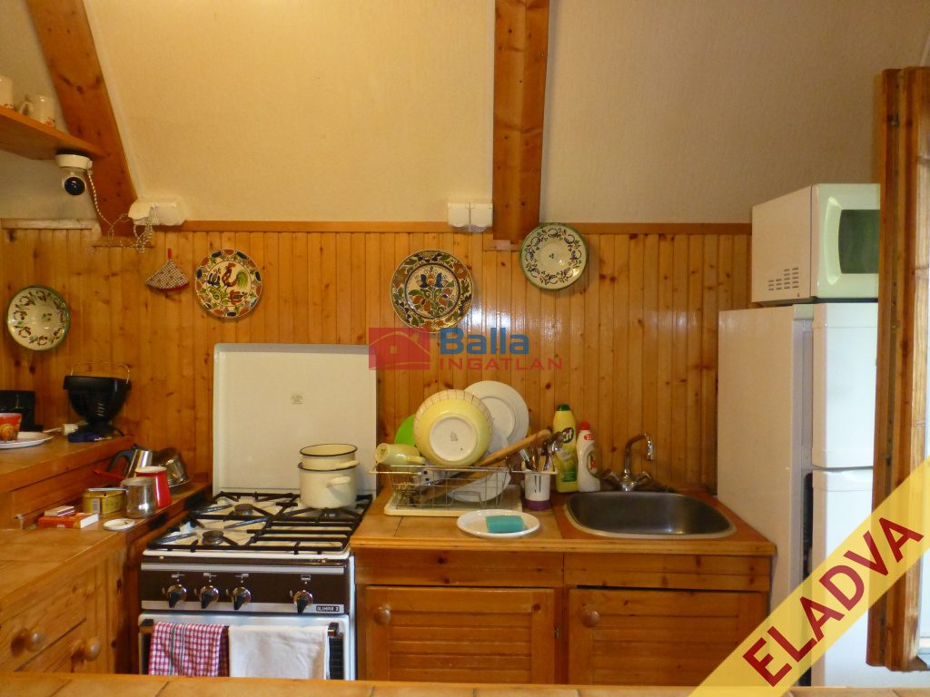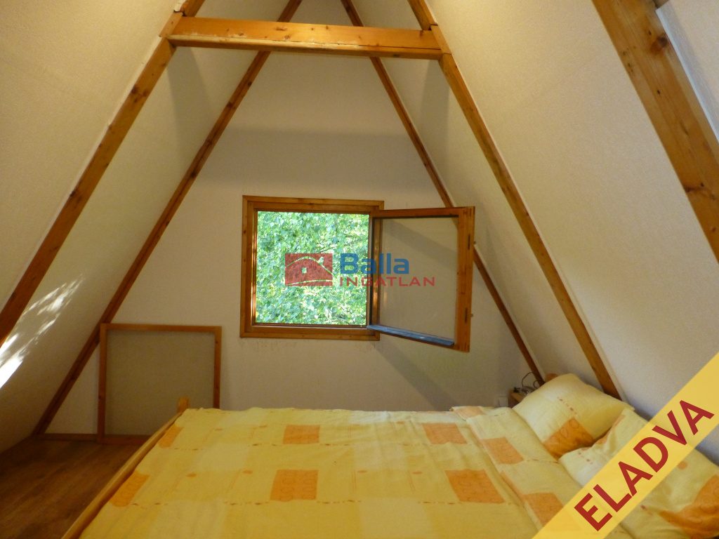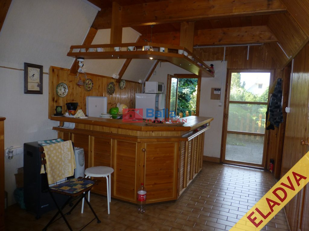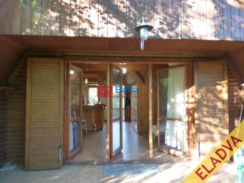 A telken álló hétvégi ház 54 m2 alapterületű, könnyűszerkezetes, a tetőtér beépítéses hétvégi ház, mely jelenleg amerikai konyhás nappaliból, zuhanyzós fürdőszobából, a padlásterében 2 kis hálóból áll. A tetőt hullámpala fedi. Az épület alatt 35m2 -es pince található.