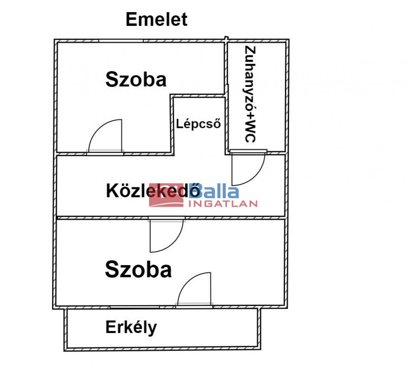 Emeleten : 2 szoba, előtér, fürdőszoba+ WC , erkély.