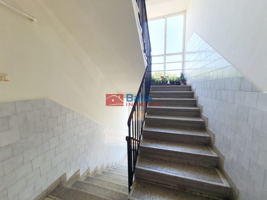 Az ablakos lépcsőház rendezett, nemrég új bejárati ajtót és nyílászárókat kapott. Kaputelefon.