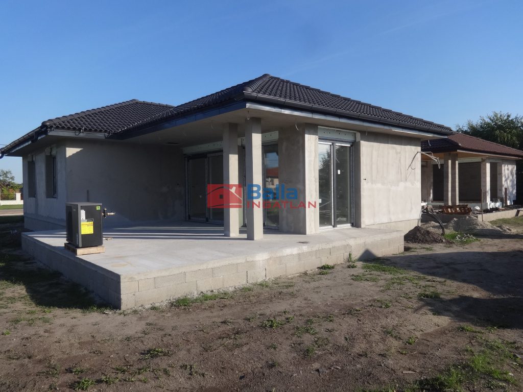 Tiszakécske újépítésű, kedvelt zöldövezeti részén 2026. év végi átadással az alábbi paraméterekkel rendelkező, összkomfortos családi ház ELADÓ:A DNY-i tájolású, 832 m2-es ideális méretű önálló telken épülő ház 95 m2 hasznos alapterületén nappali+3 hálószoba, konyha, étkező, fürdőszoba, toilett, gardrób és közlekedő kerül kialakításra. Műszaki tartalom tekintetében vasbeton sávalap, 30 cm-es pórusbeton falazóelem, vasalt betonkoszorú kialakítású. A külső homlokzat fehér nemesvakolat borítást kap. A gomba és rágcsáló elleni védelemmel ellátott, ácsolt tetőszerkezetre betoncserép héjazat kerül színes ereszcsatornával.A födém fogópárra függesztett gipszkarton párazáró fóliával kivitelezésű. A nyílászárók 3 rétegű üvegezést kapnak, redőnnyel és szúnyoghálóval ellátottak lesznek.A belső ajtók kiváló minőségű CPL dekor ajtók, átfogó tokkal. Az épületben a szobák helyiségei laminált melegburkolattal, míg a többi helyiség járólap borítással rendelkezik majd. Hőszigetelés tekintetében az aljat 12 cm, a homlokzat 15 cm (EPS80), míg a födém 25 cm kőzetgyapot lesz. A fűtés hőszivattyú segítségével padlófütés hőleadással történik.A melegvíz ellátás 200 literes HMV tartály hőszivattyúval, de igény szerint 300 literes is választható. Az ingatlan vizes helységei, a konyha és az étkező kiváló minőségű fal-és aljzatburkolattal ellátottak lesznek.Elektromos felszereltség: helyiségenként mennyezeti lámpa, 5-6 dugalj, kapcsoló, internet és TV kiállások. Az ingatlan átadása 2026 végi! Finanszírozással ( támogatott hitelek, CSOK+, babaváró, stb.) , illetve egyéb információval kapcsolatban várjuk hívását!Az ajánlat KIZÁRÓLAG a felépítményre vonatkozik, a telek opcionális!